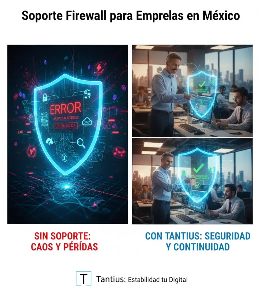 ¿Te ha pasado que un lunes por la mañana nadie puede abrir el sistema y el contador entra en pánico porque no ve las facturas? Muchas PyMEs descubren tarde que su firewall estaba mal configurado o sin monitoreo. Un servicio de soporte de firewall evita ese escenario y protege tu operación diaria. En Tantius ayudamos a empresas mexicanas a mantener seguridad para PyMEs con impacto directo en sus ingresos y reputación.